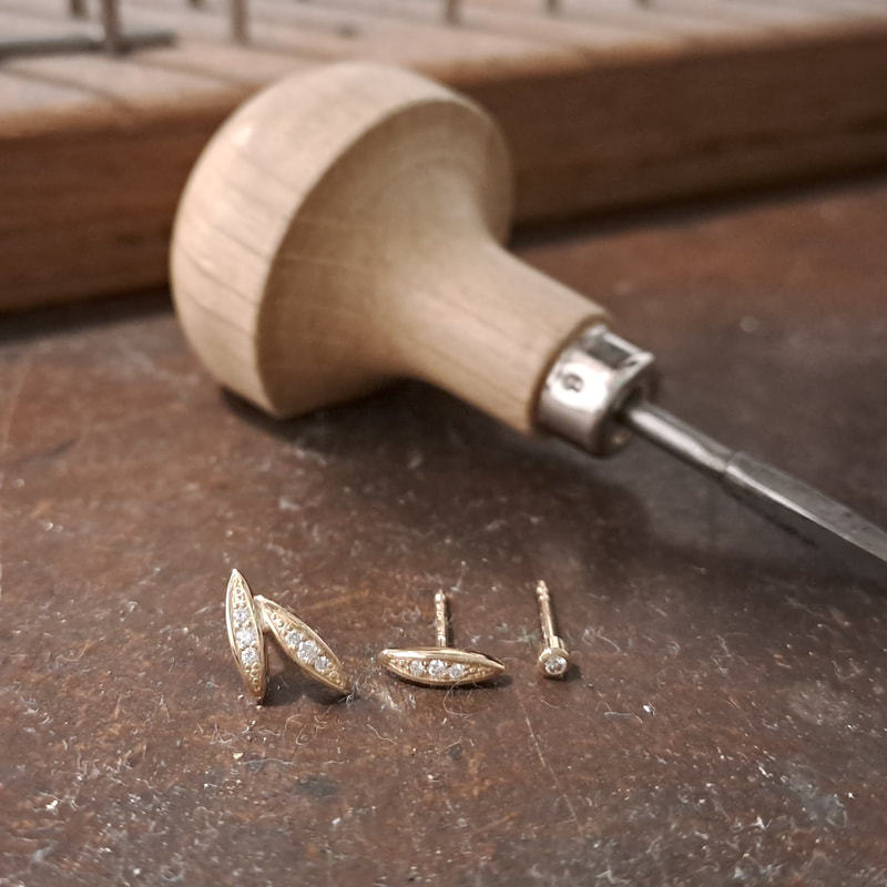 En or 750 millièmes (18ct) ou en platine 950, associé à des diamants, des perles ou à des pierres de couleur, les bijoux vendus dans ma boutique sont réalisés sur place, de manière artisanale, avec un grand souci du détail.